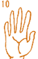 下部で丸みのある線と主線がストレートな流れのこの手の相は、理知的で理想的な生命線で、長寿繁栄、円満、大成功の吉相である。 |